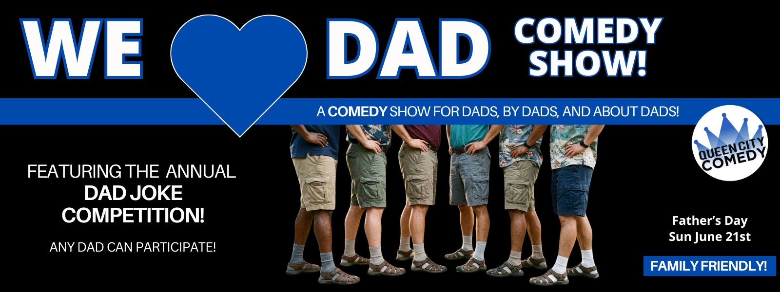 Give Dad what he really wants his special day! Come see a hilarious comedy show for, by, and about Dad's! The best stand up comedians, improvisors, and more bring a family-friendly and interactive evening of laughter and fun. BONUS! Charlotte's only DAD JOKE BATTLE!! Any Dad can jump on stage and participate! One Dad will be crowned Charlotte's Dad Joke King!