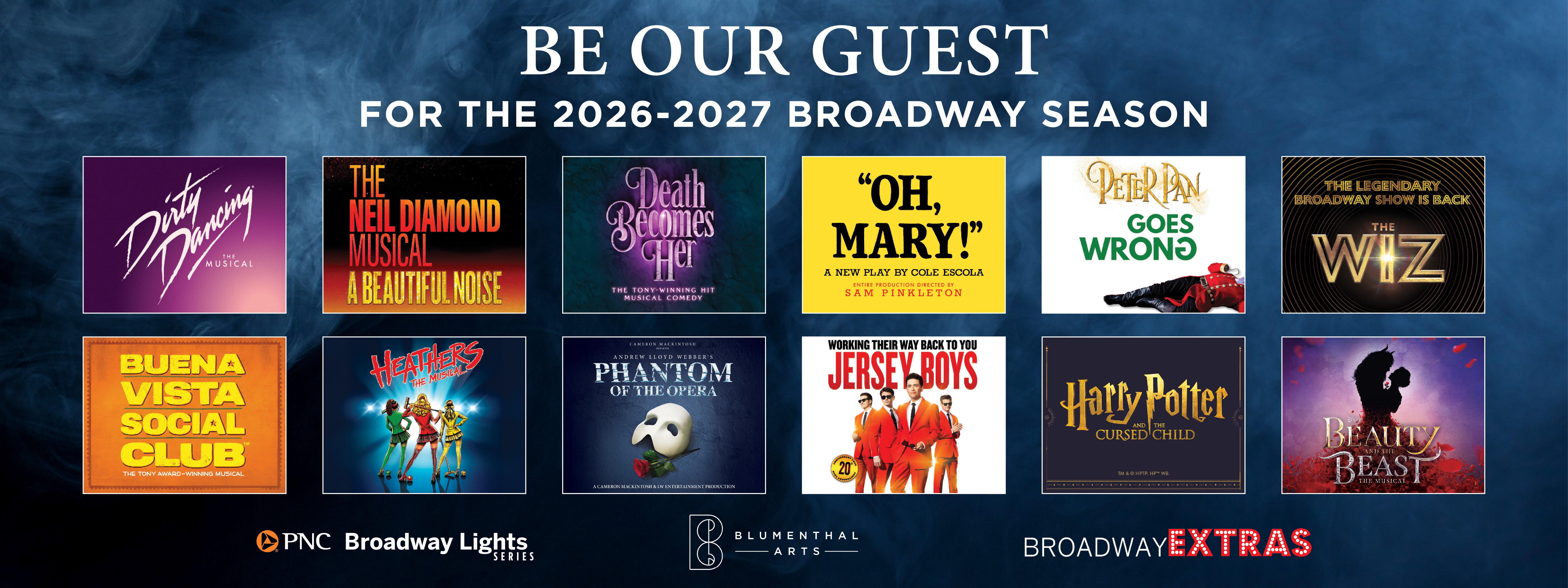 The season is a standout mix of drama, romance, spectacle, comedy, and theatrical magic in the PNC Broadway Lights Series. Highlights include the 40th anniversary return of Phantom of the Opera in a revitalized production featuring Maria Björnson’s original design; a new, reimagined production of Beauty and the Beast; the Charlotte premiere of Harry Potter and the Cursed Child; the regional premiere of Oh, Mary!; the Charlotte premiere of Peter Pan Goes Wrong, produced by Blumenthal Arts and staged exclusively in Charlotte; and Buena Vista Social Club, arriving in Charlotte following its Broadway run. The season also includes Dirty Dancing and Death Becomes Her, rounding out a lineup that blends returning favorites, fresh productions and major Broadway titles.